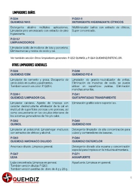 Ver también sección Otros limpiadores generales: P.Q52 QUIMOL y P.Q64 QUEMDIZ/DETERCLOR.