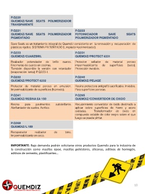IMPORTANTE: Bajo demanda podrán solicitarse otros productos Quemdiz para la industria de