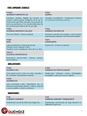 Amoniaco diluido. Limpieza general. Detergente clorado alta espuma y concentración