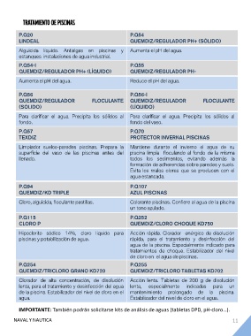 IMPORTANTE: También podrán solicitarse kits de análisis de aguas (tabletas DPD, pH-cloro…).