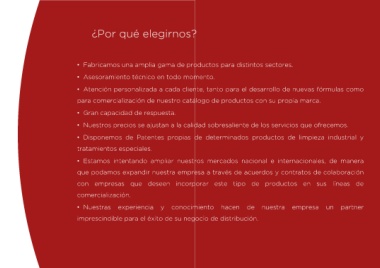 • Atención personalizada a cada cliente, tanto para el desarrollo de nuevas fórmulas como