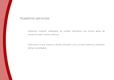 Nuestros servicios Siguiendo nuestros estándares de calidad ofrecemos una amplia gama de productos para muchos sectores. Fabricamos lo que nuestros clientes necesitan y nos comprometemos a satisfacer dichas necesidades